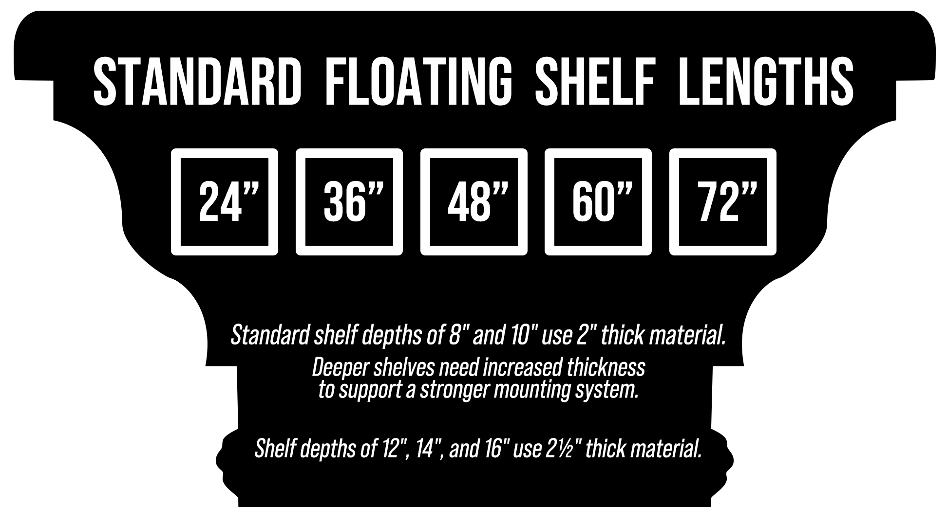 All prices include my self-designed mounting system, finish, all fasteners, and an instruction sheet. Nothing else is needed for a complete installation. The supplied mounting system is very easy to install, and is plenty strong. Simply screw the bar to the studs in the wall, slide the shelf onto it and that’s it! The mounting bar is designed to be a friction fit inside the shelf. It keeps the shelf firmly in place, but for added strength, the several supplied “set screws” can be installed along the back of the shelf if necessary.